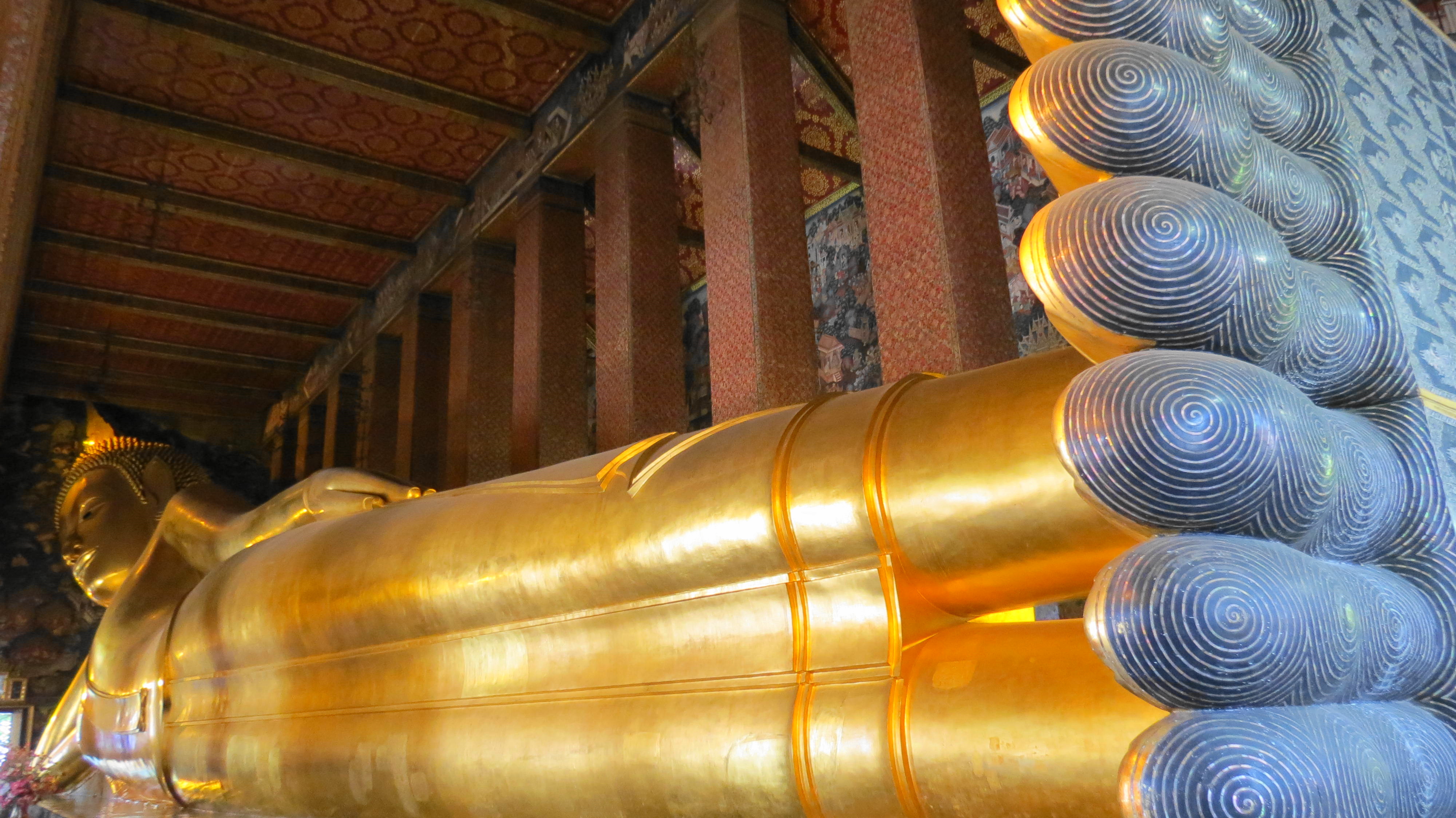 Por fin llegamos a Wat Pho, el Templo del Buda Reclinado, el cual estábamos muy ansiosos de conocer